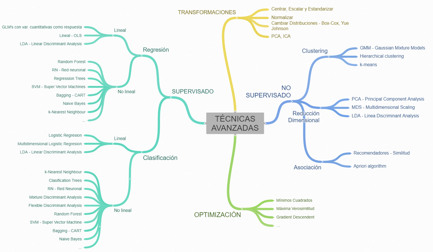 Lo podemos ordenar por aplicación en cuanto a técnicas supervisadas y no supervisadas: